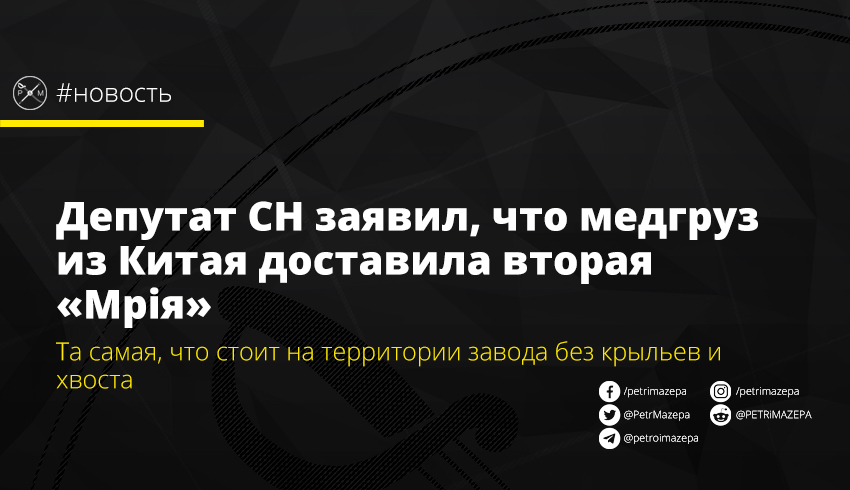 Депутат СН заявил, что медгруз из Китая доставила вторая «Мрія»