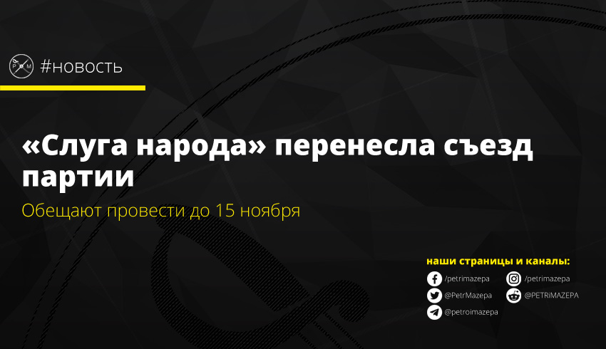 Партия «Слуга народа» перенесла дату проведения съезда политсилы, на котором должны избрать нового председателя партии. Ранее мероприятие было запланировано на конец октября.