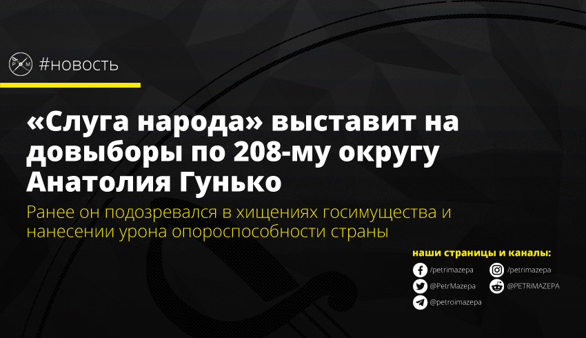 В «Слуге народа» определились с партийным кандидатом на довыборы по 208-му округу. Им предсказуемо стал Анатолий Гунько, который еще в прошлом году шел на выборы в соседнем 209-м округе от партии «Батьківщина». А еще несколькими годами ранее – сидел в «аквариуме» в суде, будучи фигурантом дела о хищениях госимущества и нанесении урона опороспособности страны.