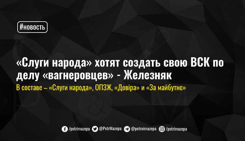 Как информирует Железняк, это уже второй проект постановления о создании временной следственной комиссии по делу «вагнеровцев» - первый был подан нардепом от «Голоса» еще в сентябре 2020. В него «Слуги народа» не подали своих кандидатов, хотя и обещали. А сегодня подали новое постановление – о создании отдельной ВСК.