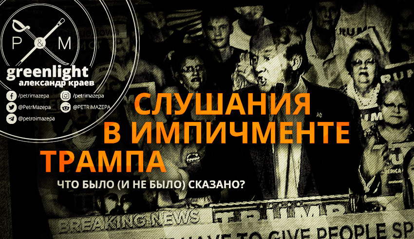 К тому моменту, как вы будете читать эту статью, определённо кто-то из администрации или частных адвокатов уже успеет дать новые показания, всплывут новые контакты или нестыковки в информации, или, вообще, Конгресс успеет отказаться от импичмента (на самом деле — нет). Как бы там ни было, если вам интересны только выводы и прогноз, сразу переходите к концу статьи.