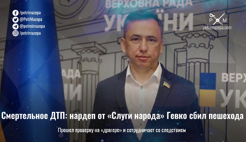 Вечером 19 марта заместитель председателя Комитета ВР по вопросам бюджета и народный депутат от «Слуги народа» Владимир Гевко сообщил, что попал в смертельное ДТП. Сегодня в ГБР добавили, что он сбил пешехода в поселке Золочевского района Львовской области.