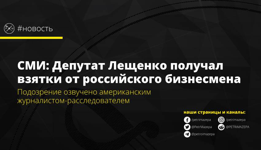 «Главный антикоррупционный прокурор страны в четверг начал расследование «подозрений» о том, что Сергей Лещенко, крестоносный депутат украинского парламента и бывший журналист-расследователь, брал взятки в 2016 году от российского источника, что позволило ему купить роскошную квартиру, которая ему не по карману. Ранее Лещенко отрицал какие-либо обвинения в правонарушениях. Покупка его квартиры в 2016 году была расследована, и он был очищен от криминала. Однако теперь в обвинениях о получении иностранных взяток появился новый элемент», - написал журналист.