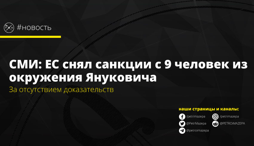 Как сообщает немецкое издание Welt am Sonntag, Евросоюзом было принято решение снять введенные в 2014 году санкции с нескольких человек, включая девятерых представителей окружения Януковича. Причина – отсутствие доказательств вины конкретных людей.