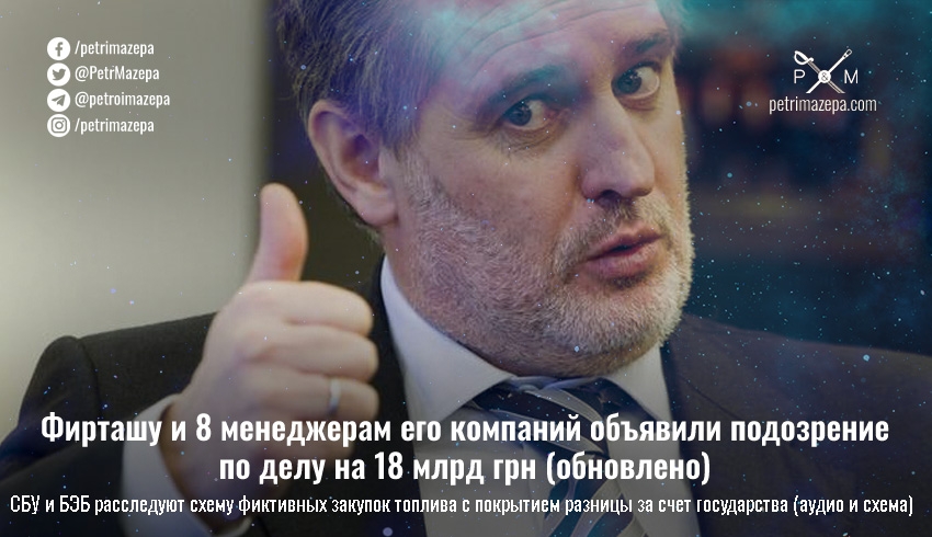 Уголовное производство касается схемы, согласно которой подконтрольные Фирташу структуры покупали топливо у его компании, но на самом деле получали 30% от объемов. Искусственный дефицит покрывали за счет государственного газа, а деньги забирали участники схемы.