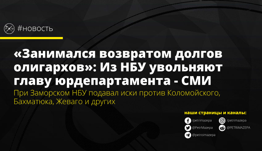 Уточняется, что только в прошлом году для взыскания долгов НБУ подал 140 исков против Коломойского и его компаний, более 50 исков против Бахматюка и его компаний, 30 исков против Жеваго, 10 против Лагуна и 7 против Климова. Юристы НБУ принимают участие во всех делах по национализации Приватбанка, и смена руководителя юридического департамента может иметь сильное влияние на ход этих дел.