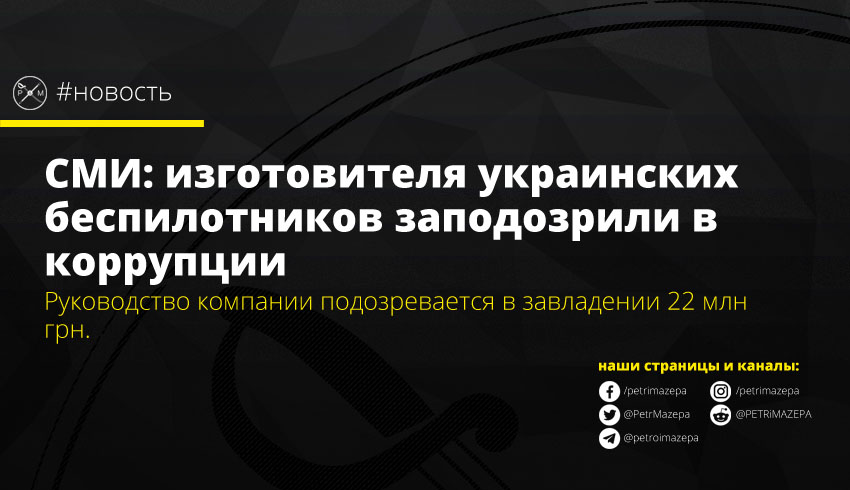 Полиция подозревает руководство завода «Меридиан», производителя украинских беспилотников «Spectator», в коррупции на 22 млн грн. По данным СМИ, расследование по статье о завладении чужим имуществом ведется с ноября 2018 года по заявлению гендиректора одного из акционеров компании.