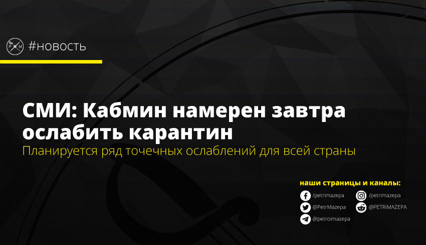 СМИ: Кабмин намерен завтра ослабить карантин