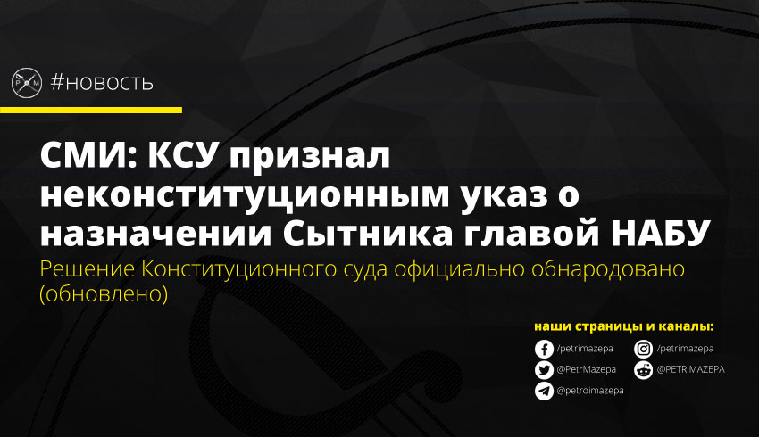 Конституционный суд Украины официально обнародовал решение о признании неконституционным указа президента о назначении Сытника главой НАБУ. В документе сообщается, что назначение президентом руководителя органа, фактически относящегося к исполнительной власти, "приведет к разбалансированию системы сдержек и противовесов, нарушает функциональное распределение власти" и таким образом нарушает статьи 5, 6, 19 и 116 Конституции Украины.
