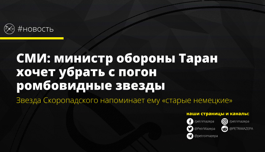СМИ: министр обороны Таран хочет убрать с погон ромбовидные звезды