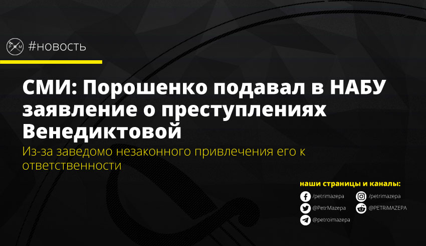 СМИ: Порошенко подавал в НАБУ заявление о преступлениях Венедиктовой