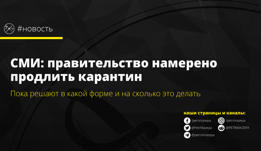 Кабинет министров Украины планирует на следующей неделе рассмотреть необходимость продления карантина в стране. Продлить должны те ограничительные меры, которые доказали свою эффективность. Разные источники сообщают о том, что карантин могут продолжить еще на две – четыре недели.