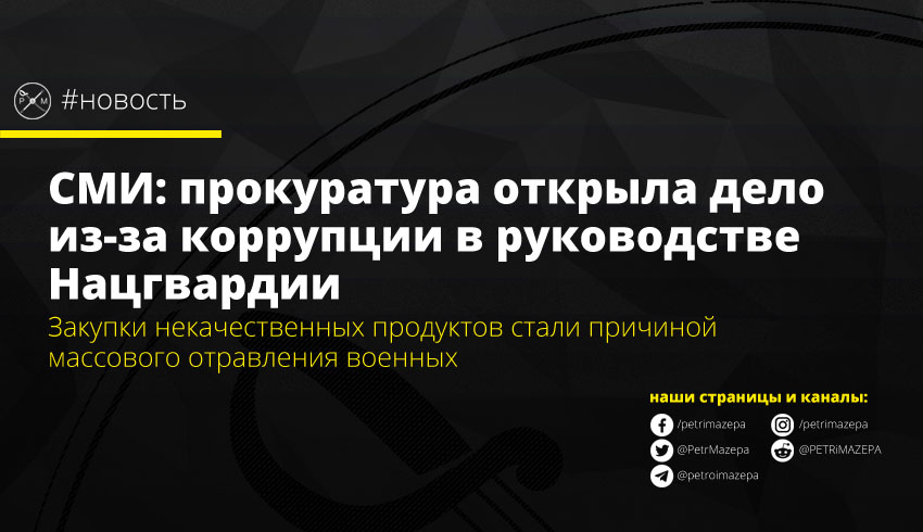 Военная прокуратура открыла дело против должностных лиц Нацгвардии из-за коррупции и злоупотребления служебным положением при госзакупках продовольствия. Как было установлено, руководство закупало по завышенным ценам некачественные и даже просроченные консервы, что привело к массовому отравлению военнослужащих.