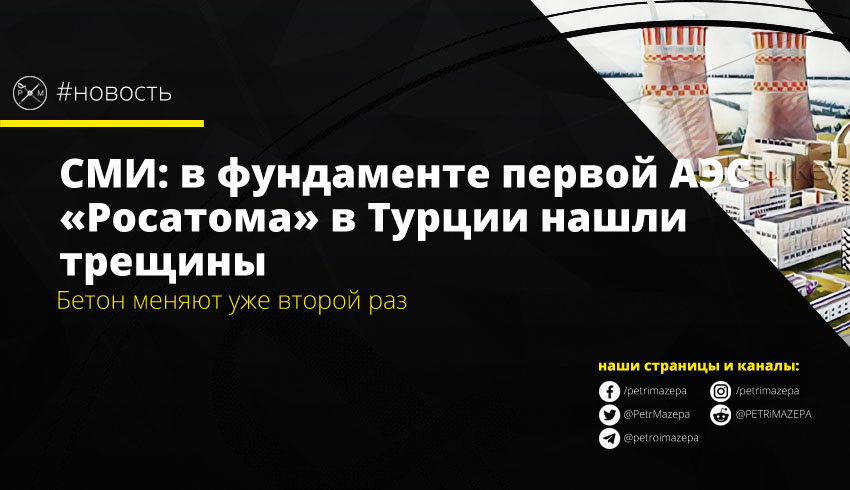 Турецкое проправительственное издание Haber Turk сообщило, что в фундаменте АЭС «Аккую», которую строит «Росатом» по заказу турецкого правительства, были выявлены трещины. Строительство уже вторично приостановлено, а госкомпания РФ рассматривает вариант продажи своей доли в проекте.