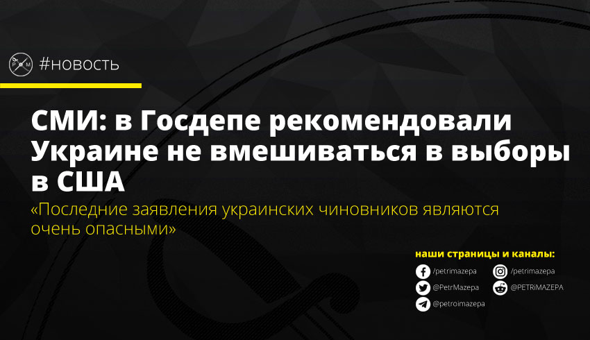 СМИ: в Госдепе рекомендовали Украине не вмешиваться в выборы в США