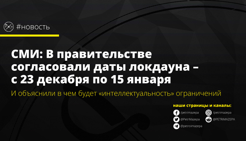 СМИ: В правительстве согласовали даты локдауна – с 23 декабря по 15 января