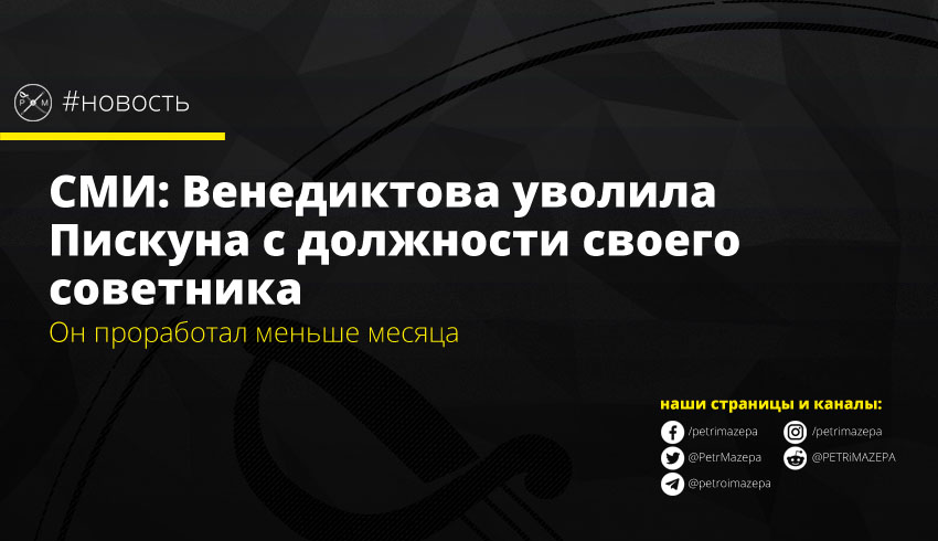 - По итогам 30 июля Венедиктова сообщила, что назначила Пискуна из-за его опыта, а мнение тех кого она назвала «реформаторами» и «активистами» о ее советниках оценила крайне невысоко.