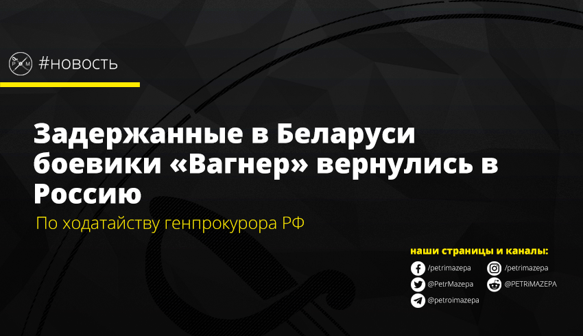 Боевики ЧВК «Вагнер», которые были задержаны в Беларуси в конце июля, вернулись в Россию. Это произошло по ходатайству генпрокурора России Игоря Краснова.