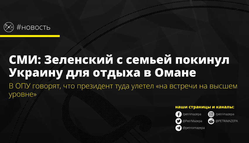 Президент Владимир Зеленский вместе с семьей улетел в Оман. Там, по информации пресс-центра Офиса президента Украины (ОПУ), у главы государства в ближайшие дни запланированы встречи на высшем уровне.