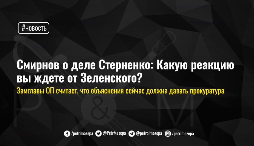 В интервью «Цензору» замглавы ОП Андрей Смирнов заявил, что акции в поддержку Стерненко были анонсированы как мирные, а подобные митинги «преследуют одну простую цель - привлечь внимание властей на то или иное событие и получить обратную связь». Он сказал, что Зеленский не может «подменять собой суд» и что приговор еще не вступил в законную силу.