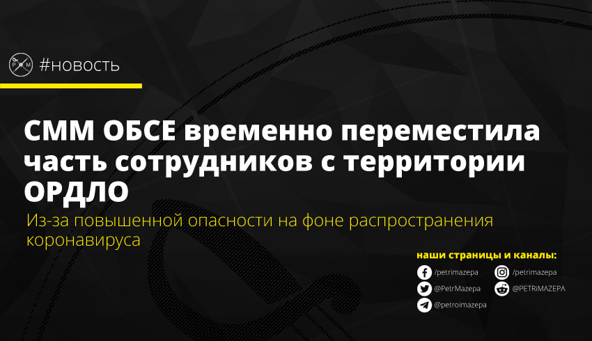 СММ ОБСЕ приняла решение временно переместить некоторых своих сотрудников с неподконтрольных территорий. Причина – распространение коронавирусной инфекции.