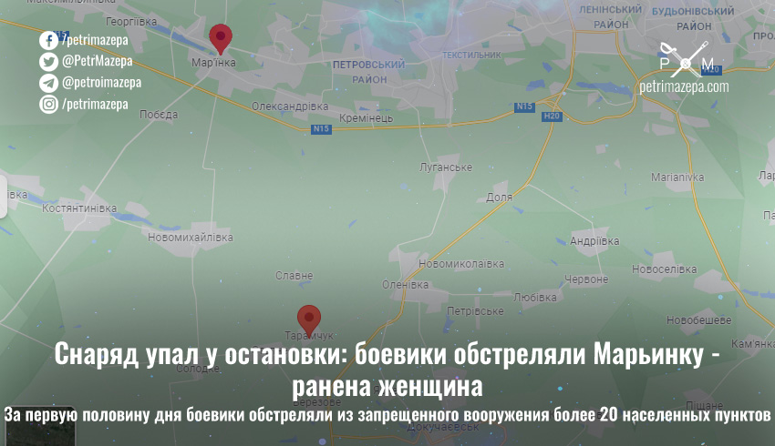 Снаряд упал у остановки: боевики обстреляли Марьинку - ранена женщина