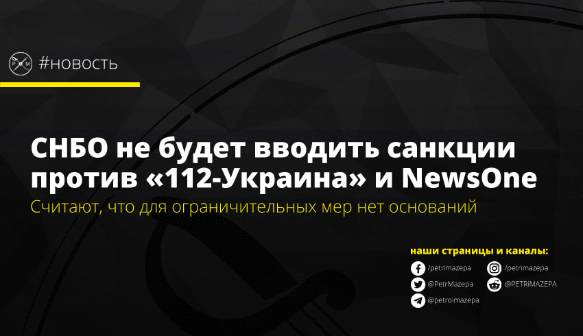 Совет национальной безопасности и обороны не будет вводить санкции против телеканалов «112-Украина» и NewsOne. Причина – в отсутствии оснований для применения ограничительных мер.