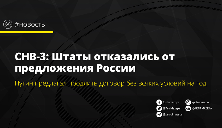 Соединенные Штаты отказываются от предложения президента России Владимира Путина продлить договор СНВ-3 без всяких условий на год.