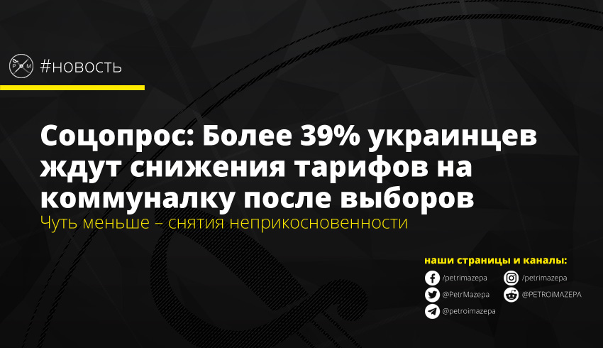 Киевский международный институт социологии (КМИС) 9 - 14 апреля провел опрос среди 2004 респондентов в возрасте от 18-ти лет и старше. Согласно его результатам (статистическая погрешность составляет 3,3%), 39,1% украинцев считают, что после выборов, президент должен снизить тарифы на коммунальные услуги. При том, что согласно действующему законодательству у него для этого нет полномочий.