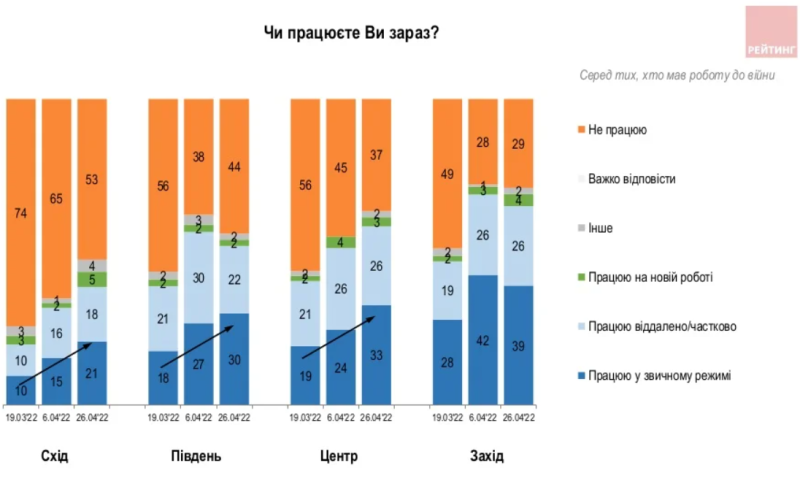 - 23 марта данные соцопросов говорили о том, что 53% работавших украинцев сегодня не работают. 19% пришлось уехать, а почти половине – разделиться с семьей