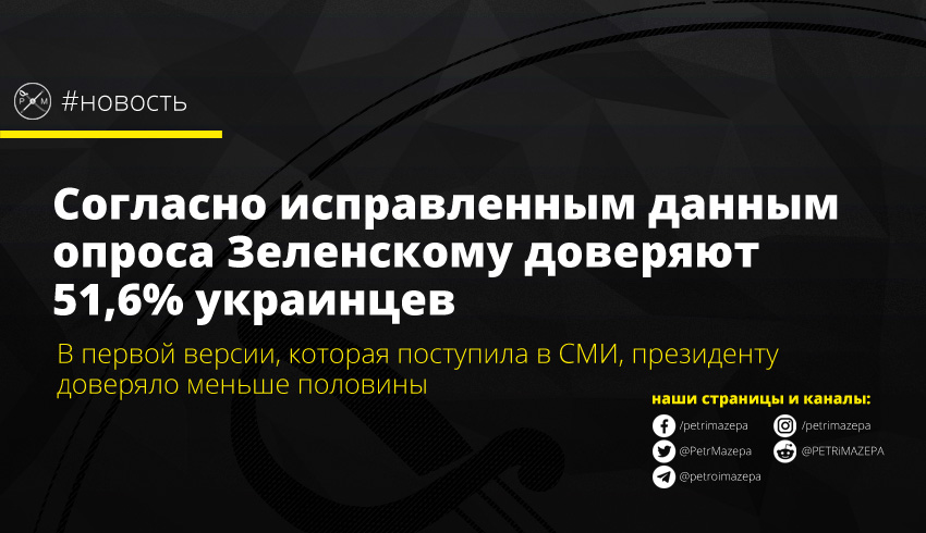 Согласно исправленным данным опроса Зеленскому доверяют 51,6% украинцев