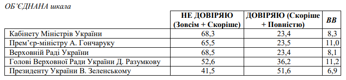 Сначала ряд изданий (например - НВ) опубликовал PDF-версию опроса, в которой только у Зеленского был положительный баланс доверия.