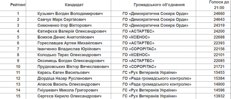 Об этом сообщается на сайте НАБУ. При этом, во время голосования были зафиксированы факты многоразового голосования с некоторой группы устройств, что могло привести к искусственному завышению количества голосов. Речь идет о кандидатах №1 и №7 - Назаре Диордице (ведущий телеканала «Наш», известный как Макс Назаров) и Василие Апасове. Интересно, что за данных кандидатов активно агитировали в соцсетях Анатолий Шарий, Андрей Портнов, Елена Лукаш, Александр Дубинский, Максим Бужанский и другие. Данные выводы НАБУ были подтверждены и независимым наблюдателем голосования.