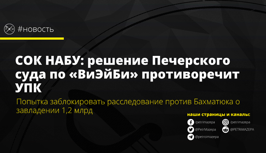 Совет общественного контроля НАБУ выпустил заявление о том, что решение Печерского районного суда фактически блокирует расследование возможной противоправной деятельности Олега Бахматюка и других лиц касаемо завладения 1,2 миллиардов стабилизационного кредита, который Нацбанк Украины предоставил «ВиЭйБи» банку.