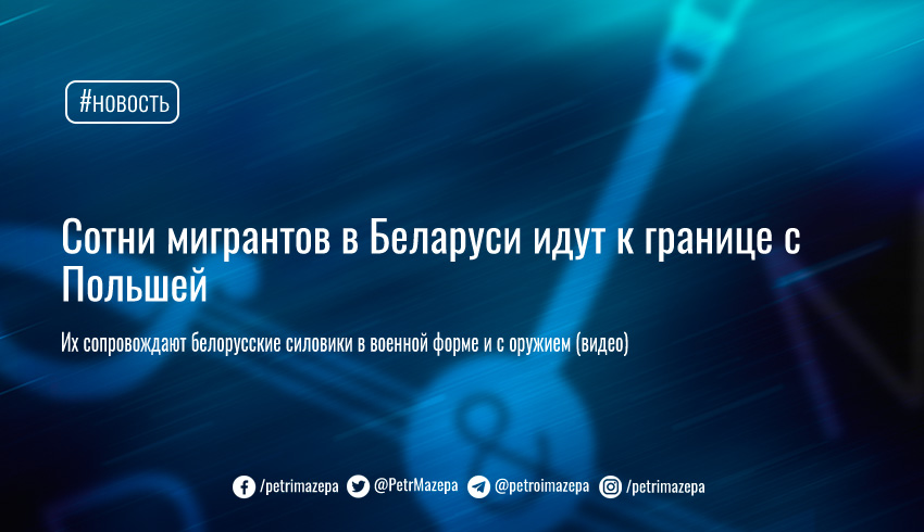 Оппозиционные белорусские СМИ опубликовали видео, как сотни мигрантов направляются к границе Беларуси с Польшей. На кадрах можно увидеть, как люди идут вдоль трассы в сопровождении белорусских силовиков в военной форме и с оружием. Некоторые из них – со служебными собаками.
