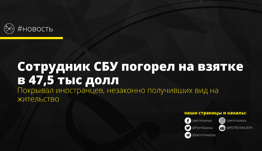 Детективы НАБУ установили, что сотрудник СБУ, узнав о получении иностранными гражданами вида на жительство в Украине путем заключения фиктивных браков, вместо того, чтобы привлечь правонарушителей к ответственности, потребовал от них взятку. В итоге, злоумышленник получил неправомерную выгоду в сумме 47,5 тысяч долларов.