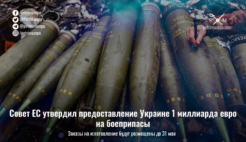 Совет ЕС в четверг, 13 апреля, утвердил выделение 1 миллиарда евро на предоставление Украине боеприпасов. Помощь выделяется в рамках Европейского фонда мира (EPF) для поддержки Вооруженных Сил Украины.