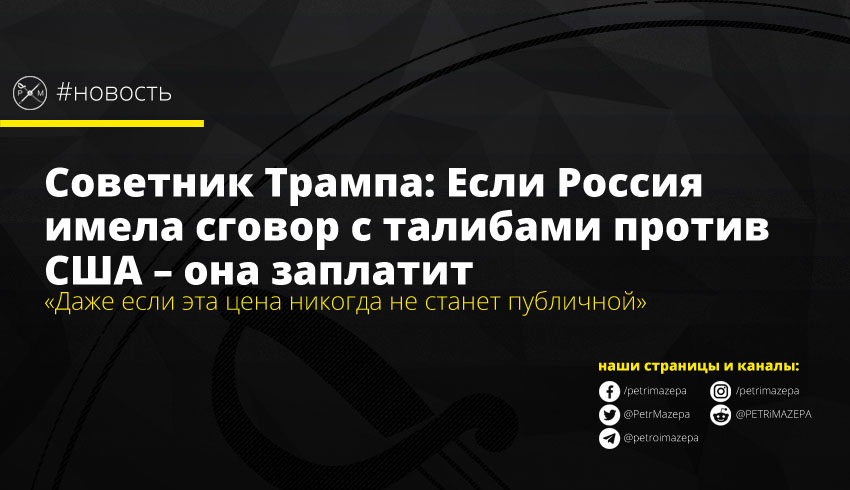 Советник Трампа: Если Россия имела сговор с талибами против США – она заплатит