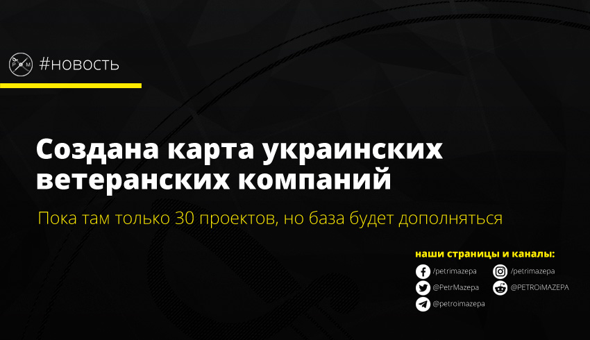 Министерство по делам ветеранов Украины сообщает о создании нового сервиса, на котором можно узнать о бизнес-проектах ветеранов. Создана данная карта изданием «Тиждень» при содействии Veterano Service и пока насчитывает только 30 компаний, но будет дополняться.