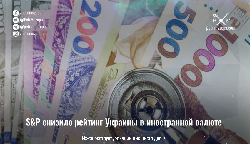 Это произошло из-за официального заявления Украины, что она реструктурирует свой внешний долг в иностранной валюте, чтобы восстановить устойчивость государственного долга, сообщили в пресс-службе агентства. В S&P отмечают, что негативный прогноз отражает риски для обслуживания коммерческого долга Украины с учетом плана правительства по его реструктуризации.