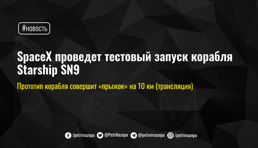 SpaceX проведет тестовый запуск корабля Starship SN9