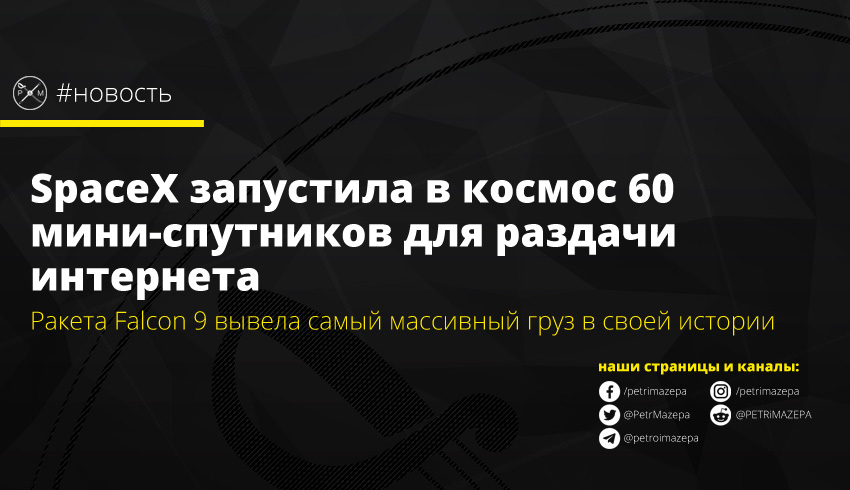 SpaceX запустила в космос 60 мини-спутников для раздачи интернета