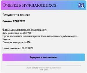 Решением районной администрации от 6 июня 2017 года он был поставлен в общую очередь. С помощью онлайн-сервиса Гомельского облисполкома можно выяснить, что по состоянию на июль 2020 года Владимир Дидык находился в очереди на жилье под №14370.