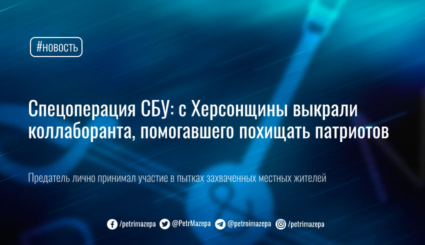 В Херсонской области Служба безопасности Украины провела спецоперацию – вывезла за пределы оккупированной территории коллаборанта, который помогал оккупантам похищать украинских патриотов и участвовал в пытках.