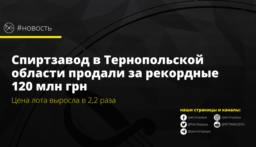 Спиртзавод в Тернопольской области продали за рекордные 120 млн грн
