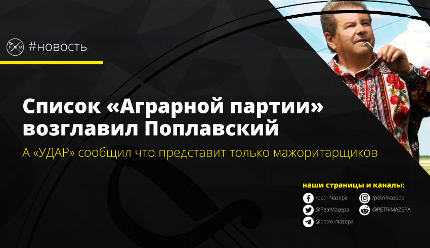Две партии представили свои списки для участия в досрочных выборах Верховной рады. Список «Аграрной партии Украины» возглавил Михаил Поплавский. А глава «УДАРА» Виталий Кличко сообщил, что его политсила не будет выдвигать кандидатов по общим спискам, только по мажоритарным округам.