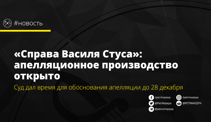 Суд зарегистрировал апелляционную жалобу издательства Vivat о книге Вахтанга Кипиани «Справа Василя Стуса» 26 ноября.