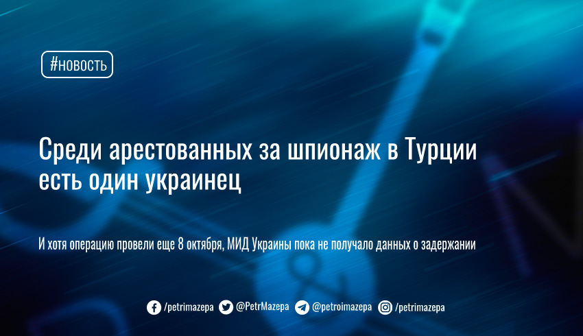 - 9 октября стало известно, что в Турции задержаны шесть иностранцев, подозреваемых в шпионаже. У них изъято оружие и патроны. Как минимум у одного из задержанных найден российский паспорт.