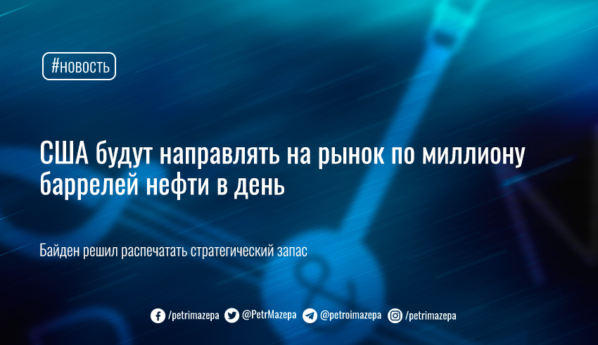 Президент США Джо Байден принял решение направлять на рынок из стратегического запаса в среднем по миллиону баррелей нефти в сутки на протяжении ближайших шести месяцев.