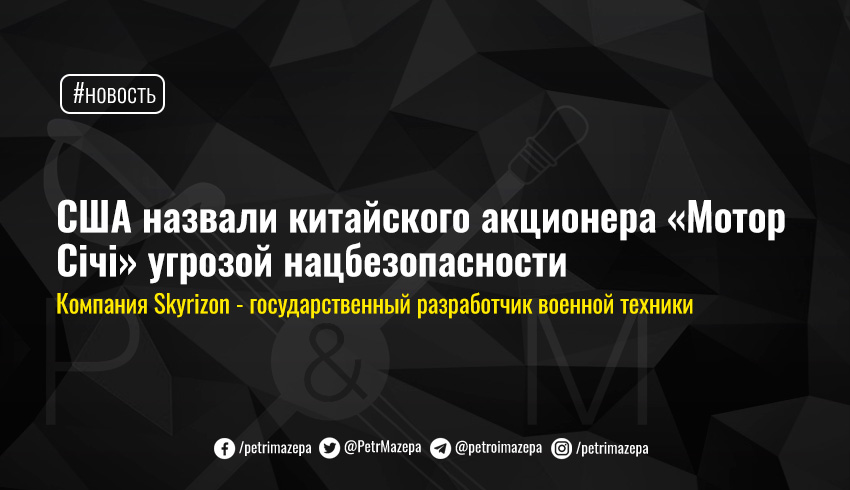 Министерство торговли США внесло китайскую компанию Skyrizon в список Military End-User (MEU) - как субъекта хозяйствования, который может действовать в интересах армии Китая. Skyrizon, напомним, купил акции украинского производителя авиадвигателей - компании «Мотор Січ».